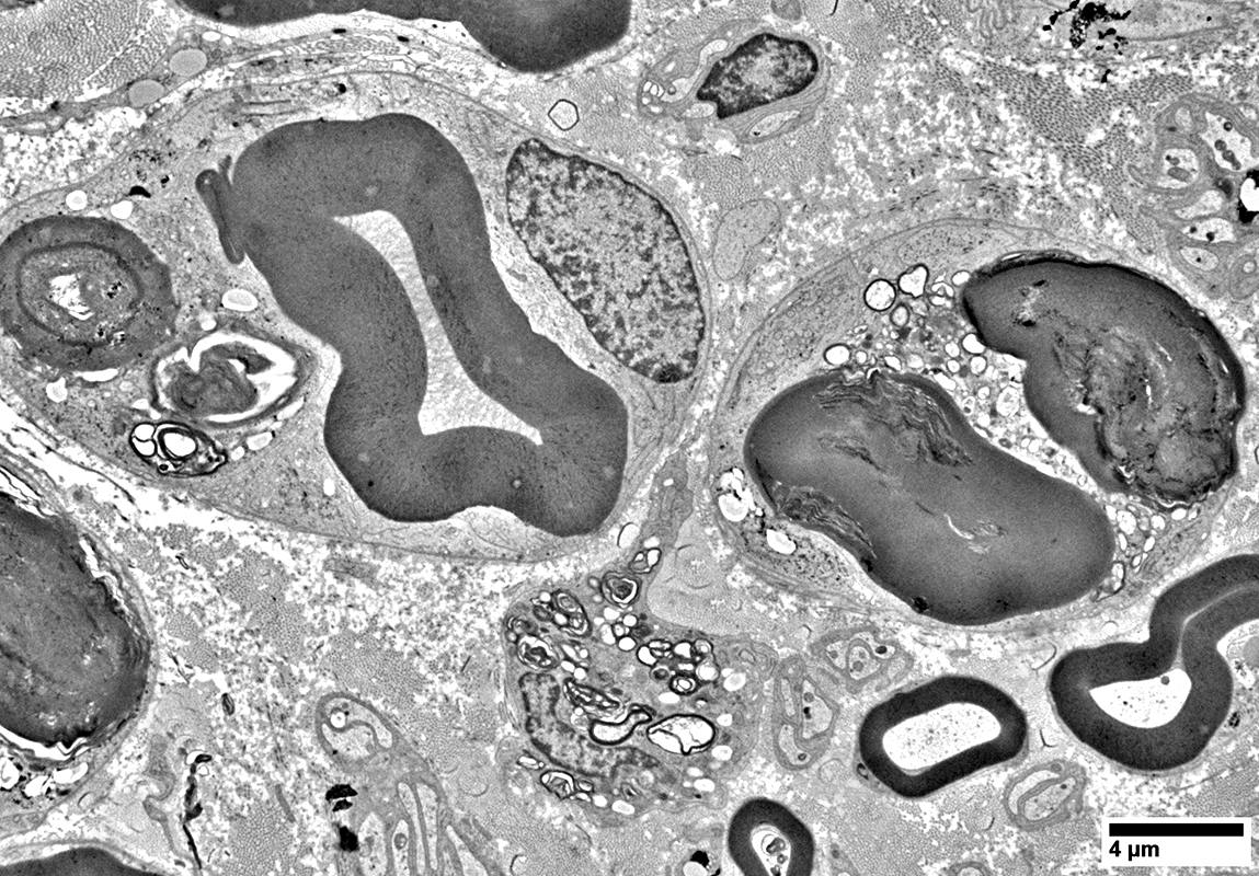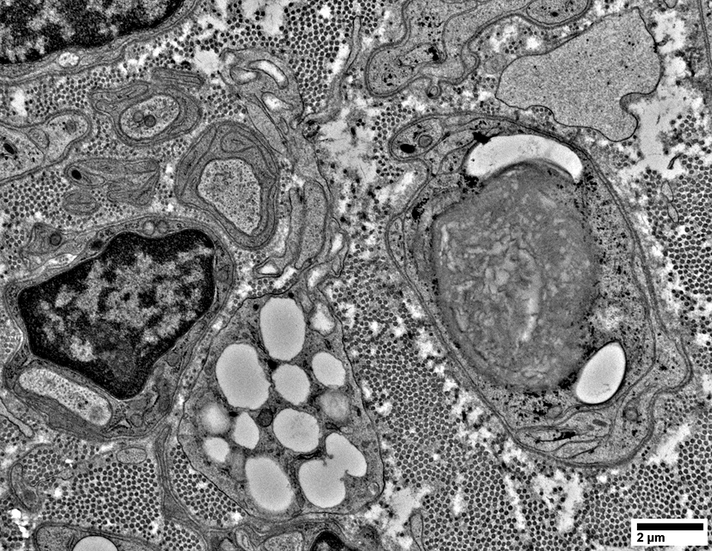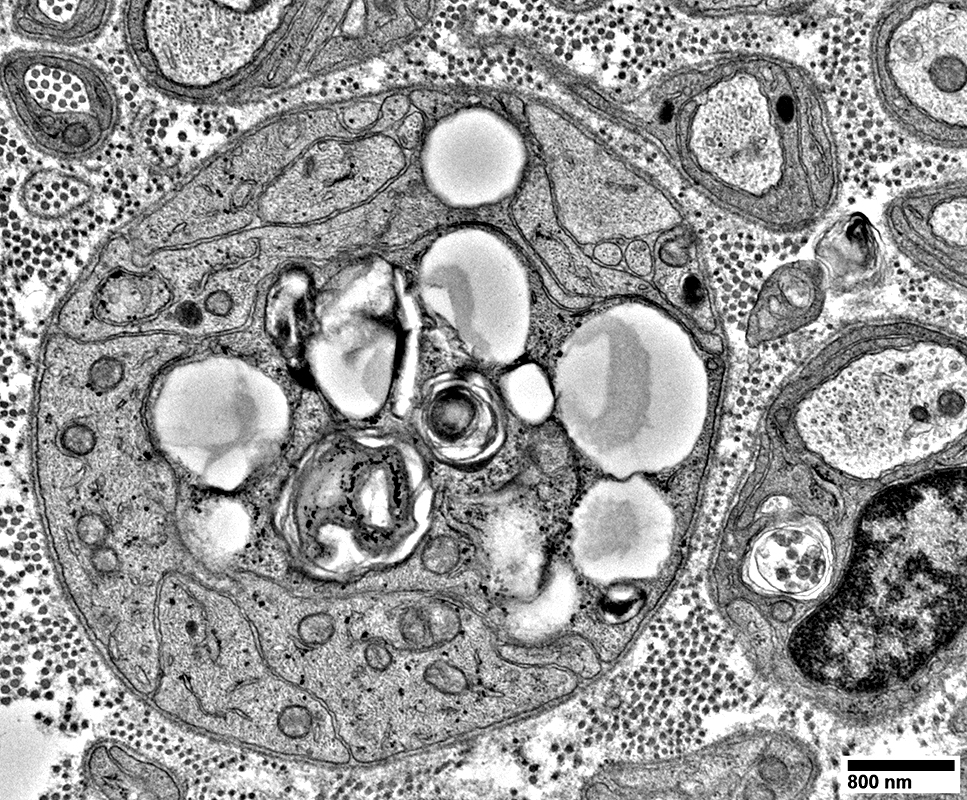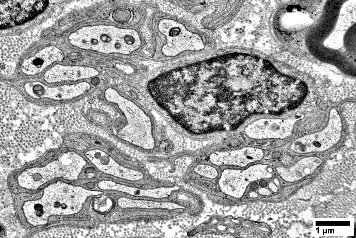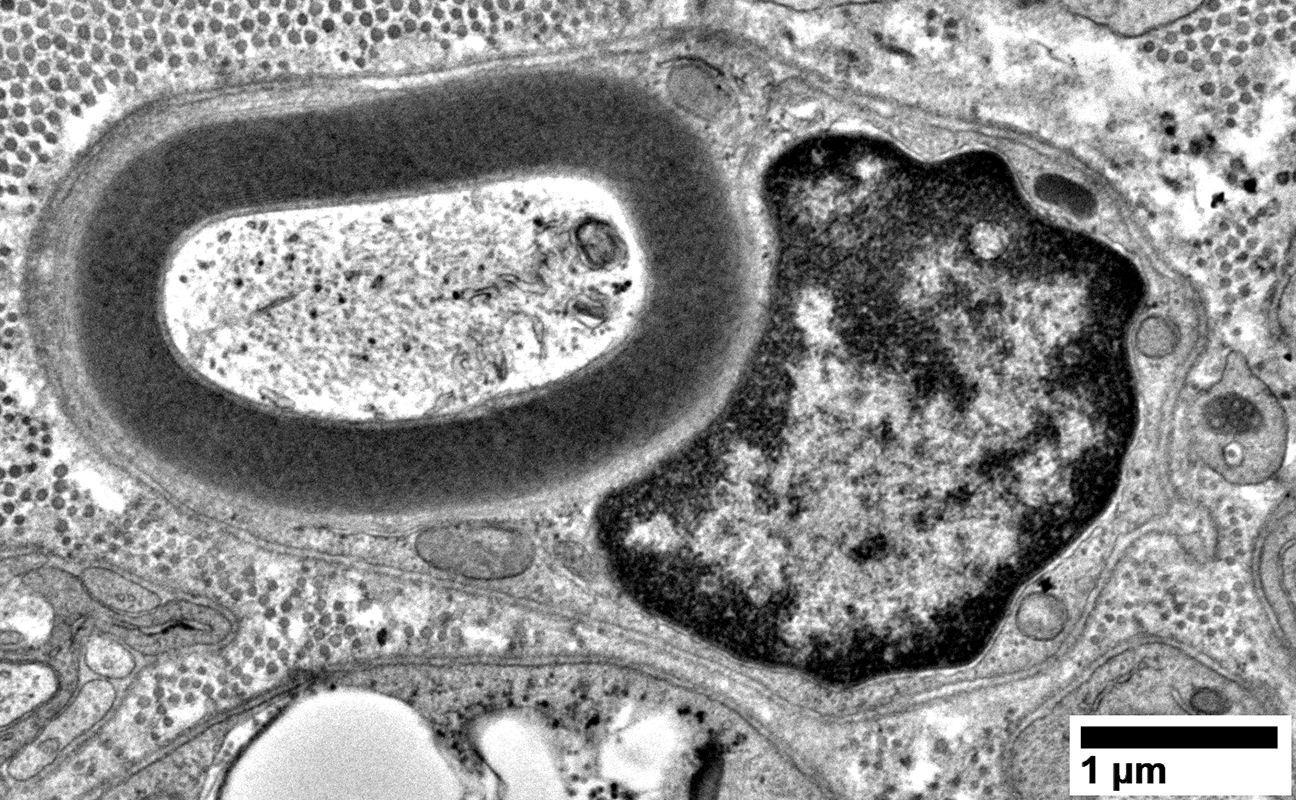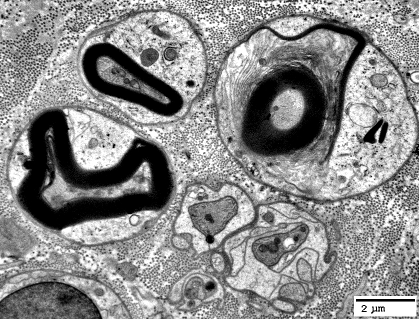 General Axons Myelin Loss Schwann cell pathology Myelin pathology Unmyelinated Wallerian Degeneration Cell processes |