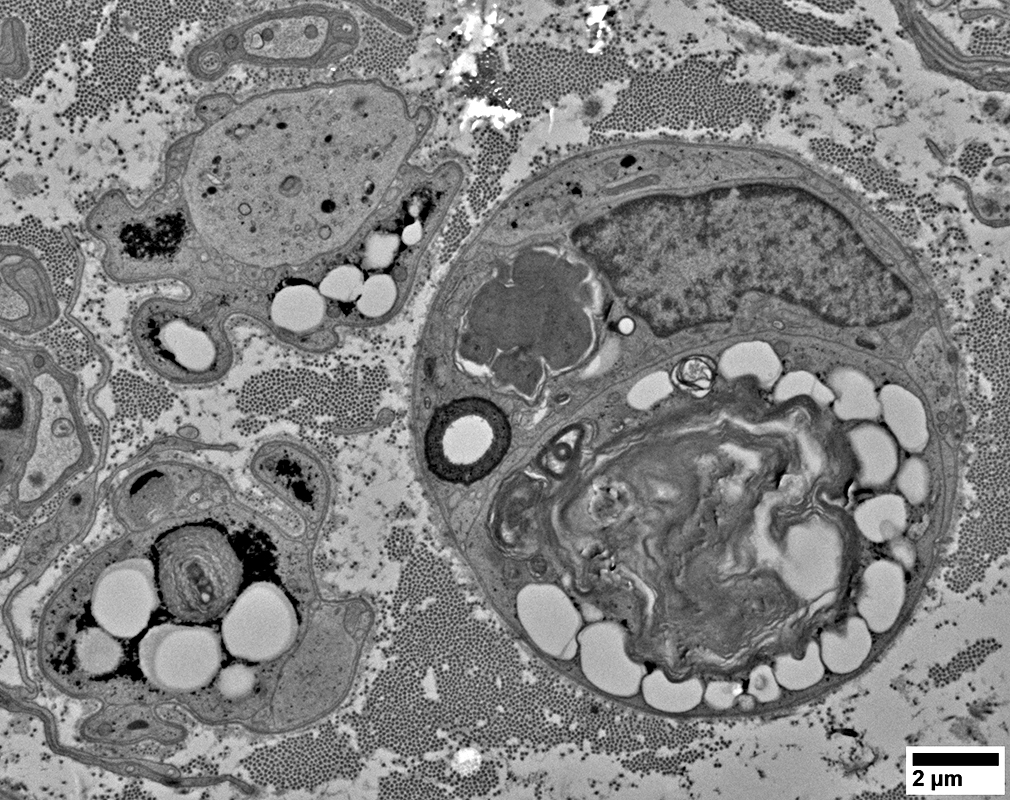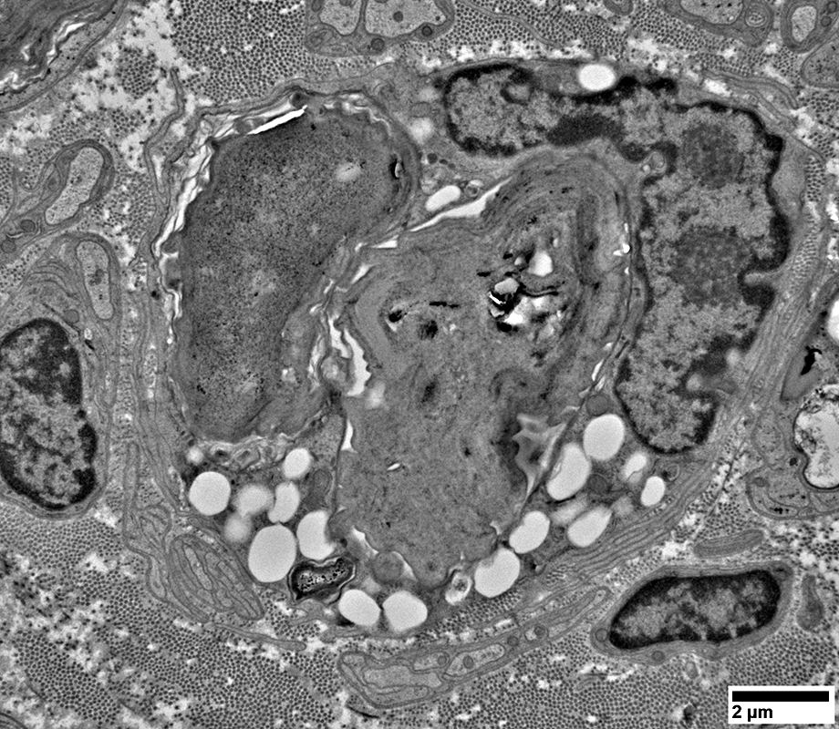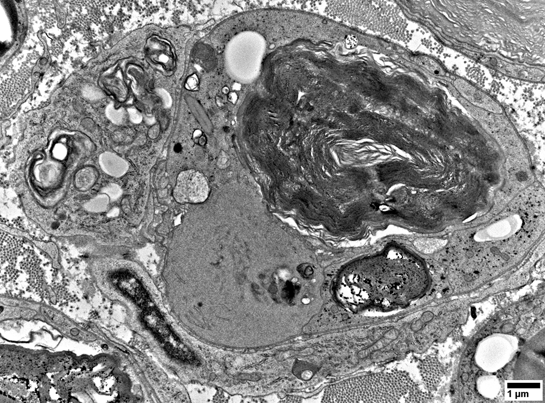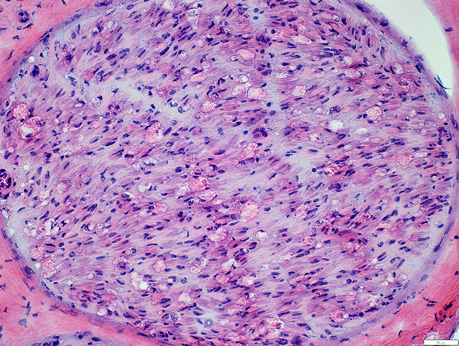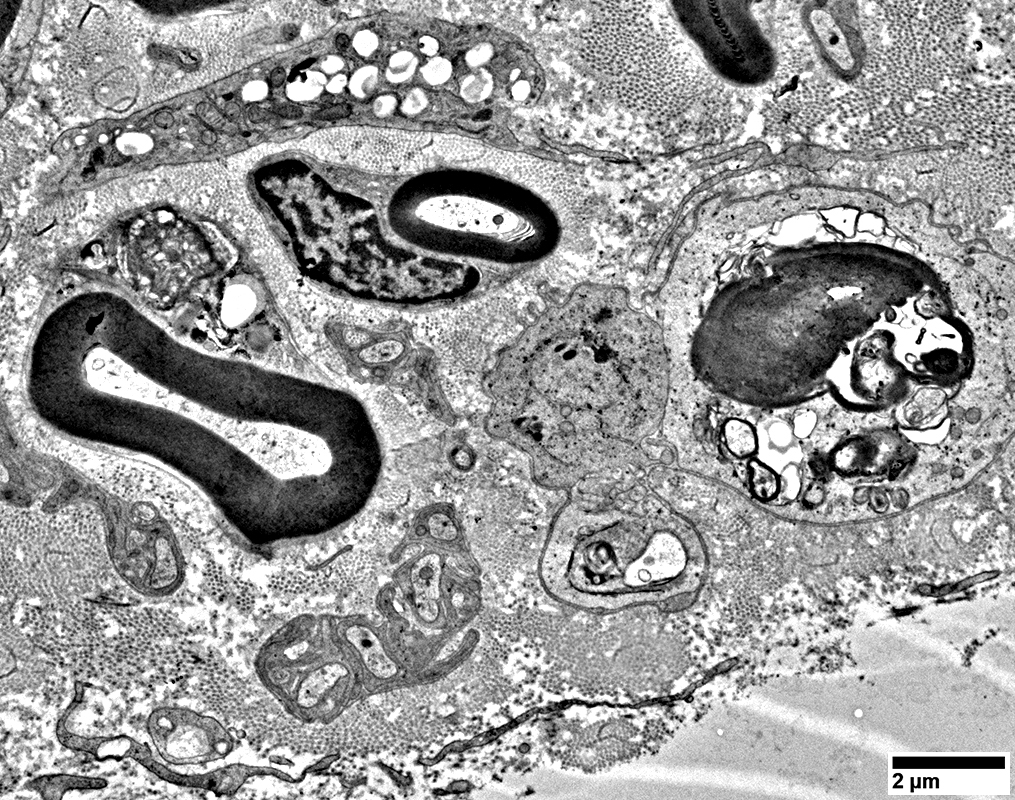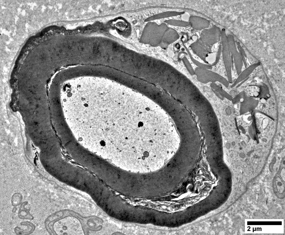 General Axons Myelin Loss Schwann cell pathology Myelin pathology Unmyelinated Wallerian Degeneration Cell processes |