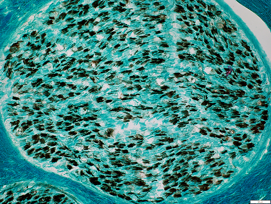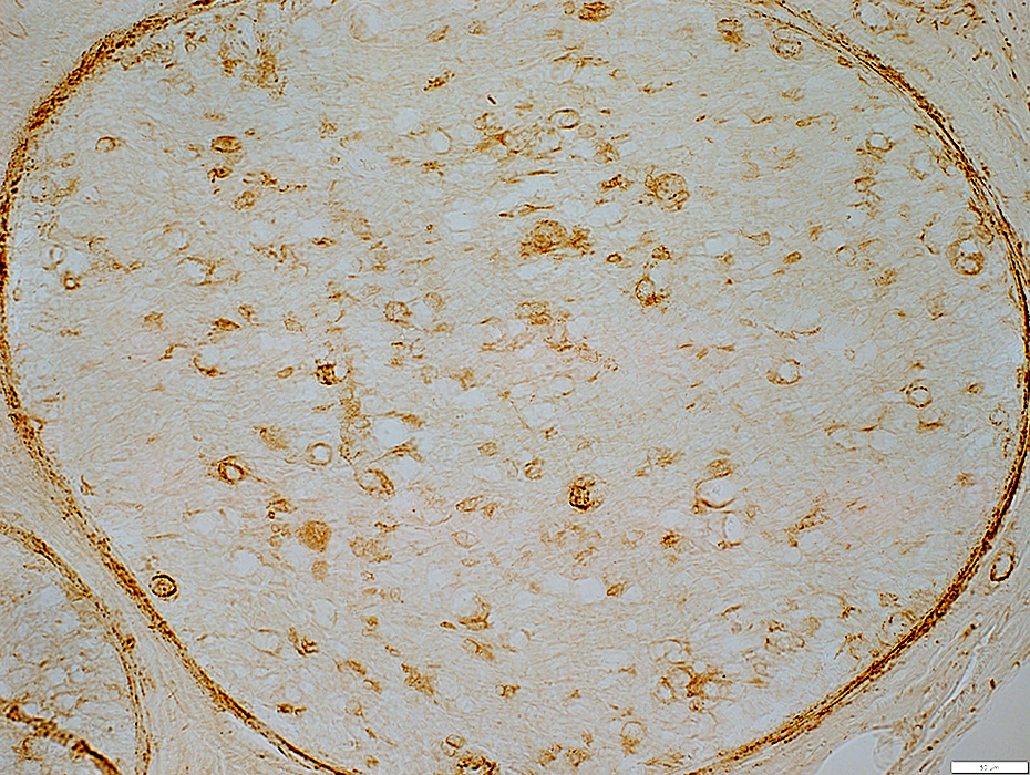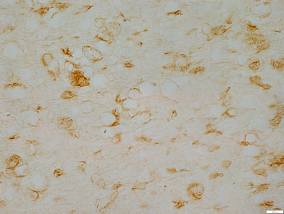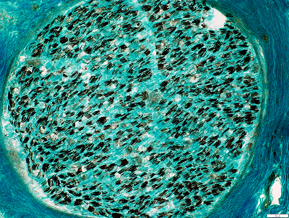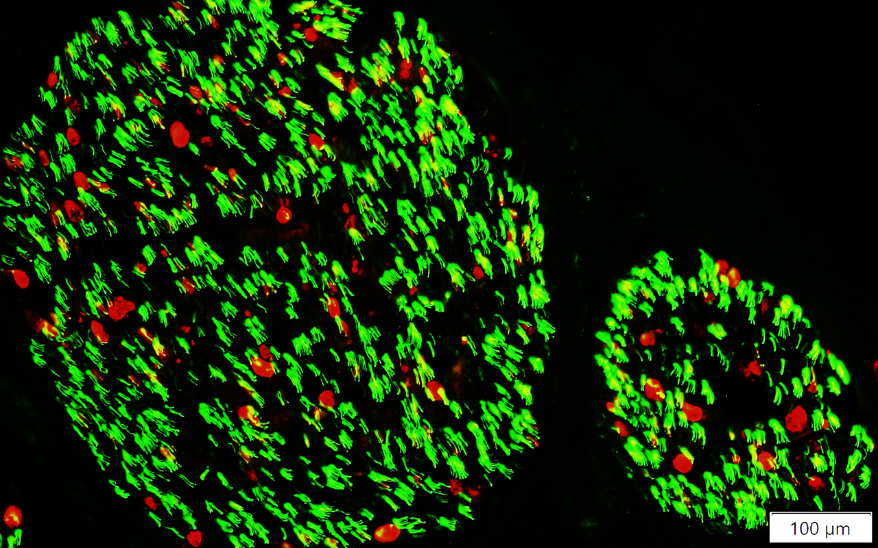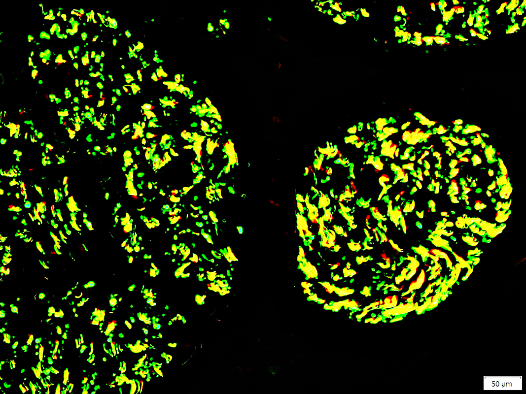 Neurofilament (Green), Myelin basic protein (Red) stain |