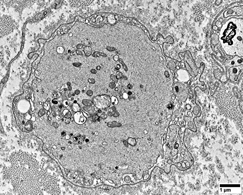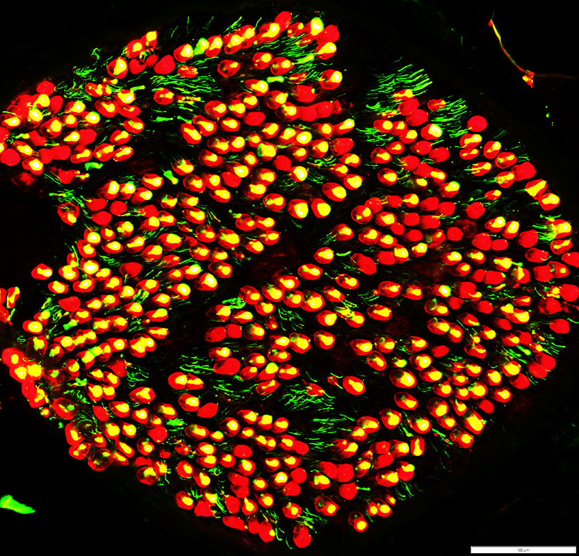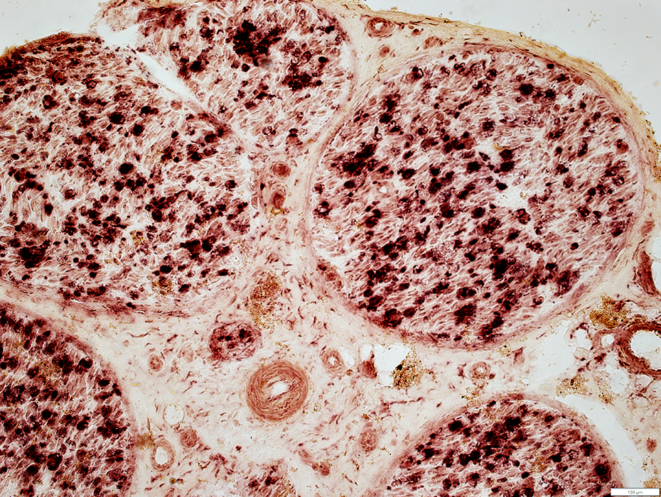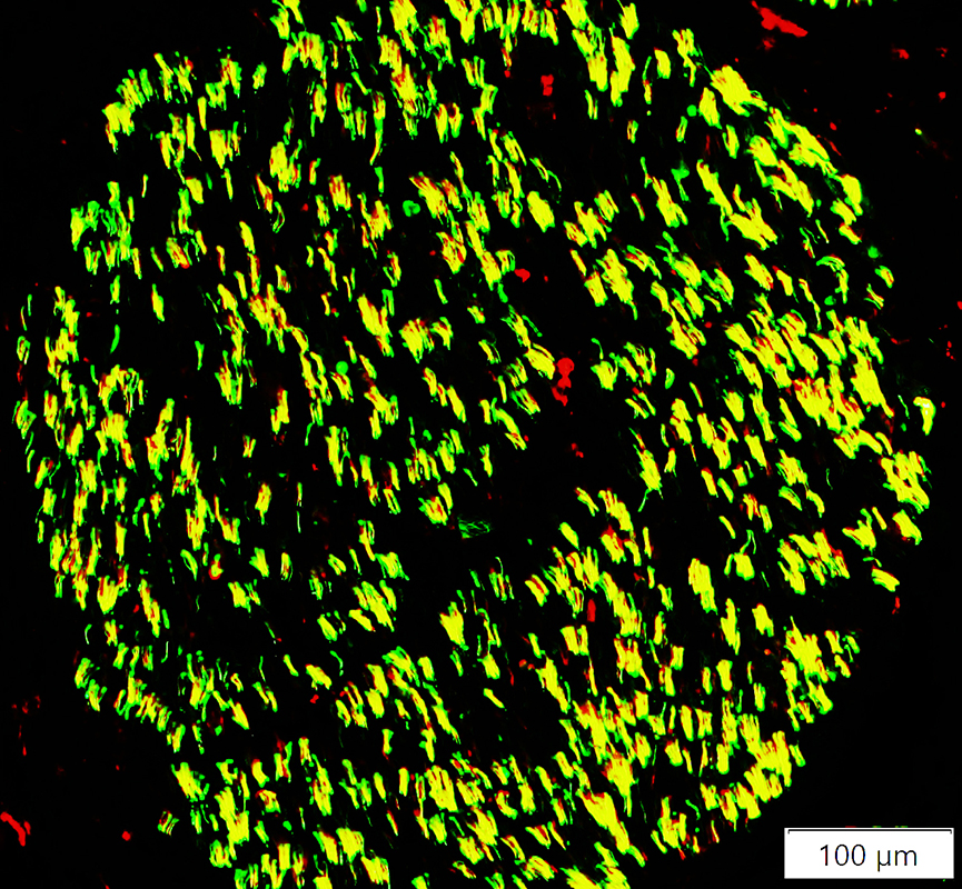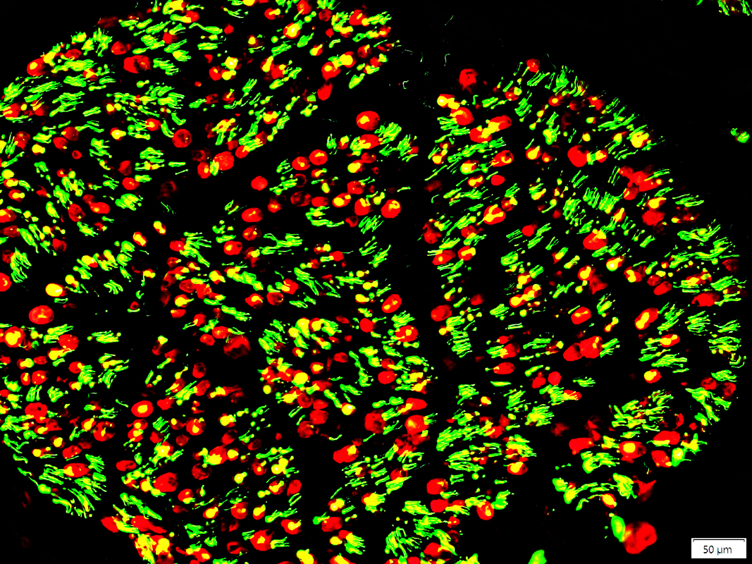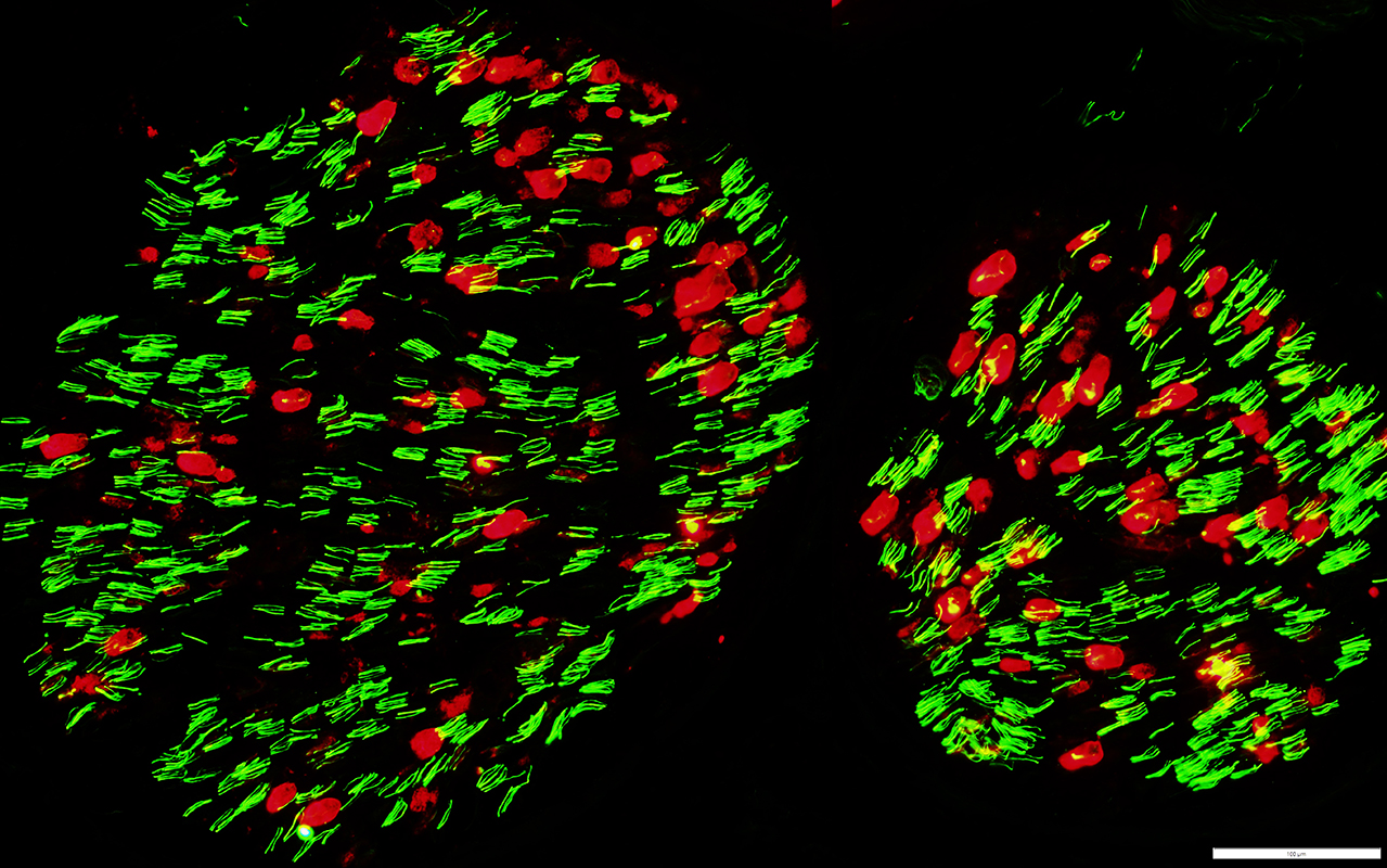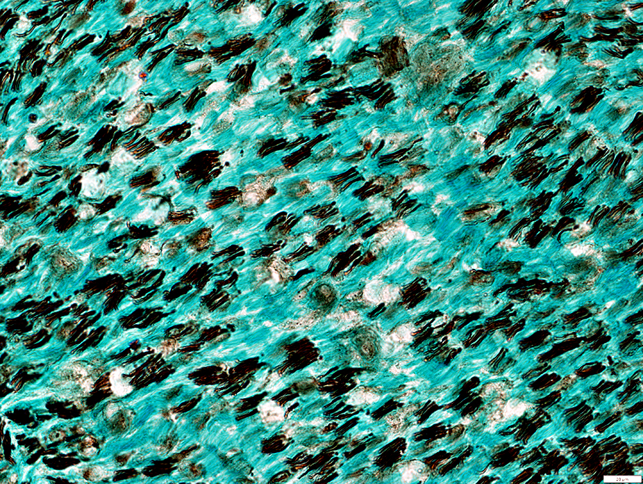 Neurofilament (Green), Myelin basic protein (Red) stain |