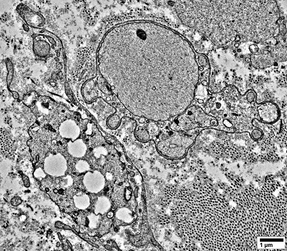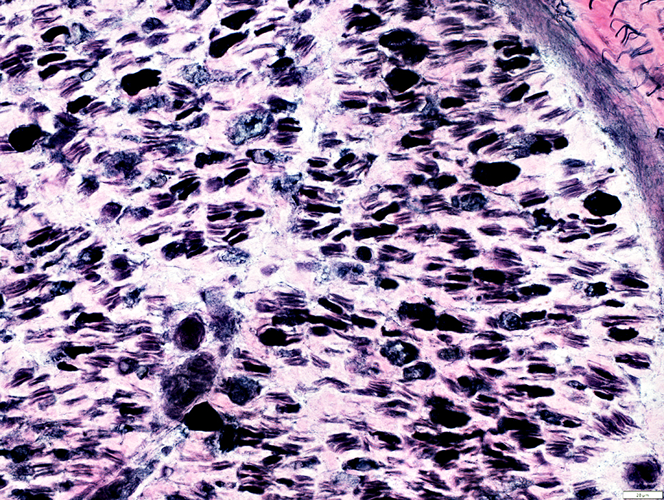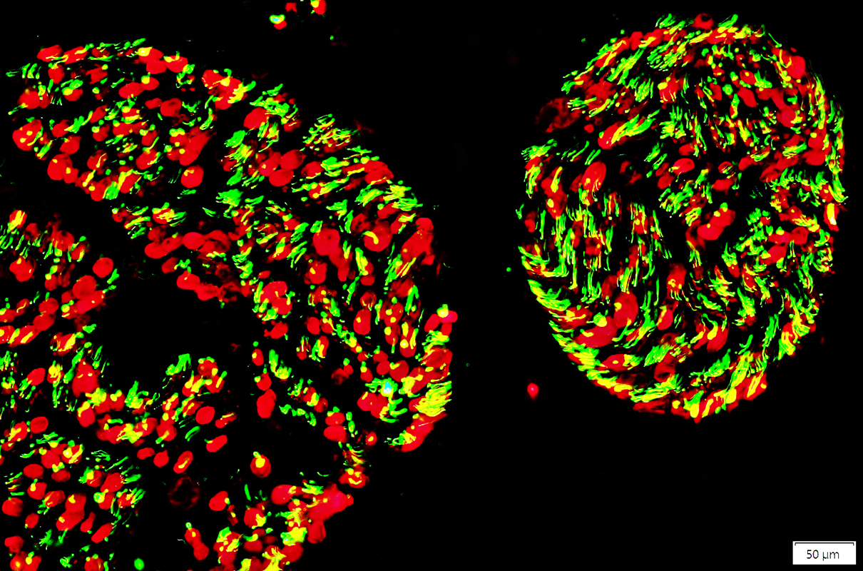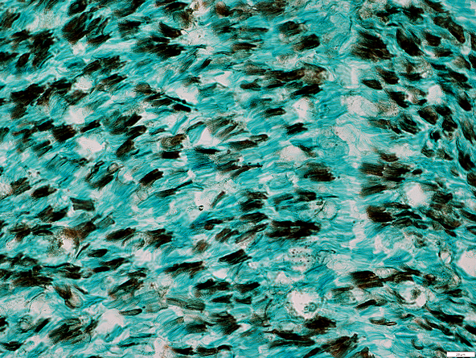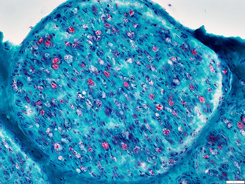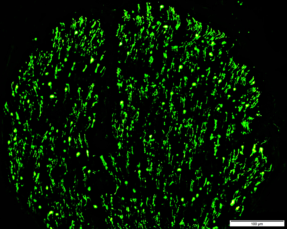 Neurofilament (Green), Myelin basic protein (Red) stain |