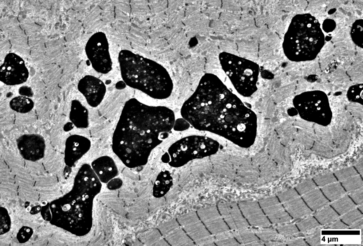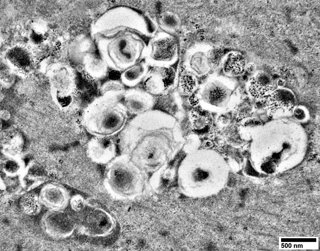 Muscle Aggregates Lipid/Lipofuscin-like material Lysosomal accumulations Ultrastructure Autophagic material Lipid-like structures Curvilinear bodies Membranous whorls Vacuoles Nerve |