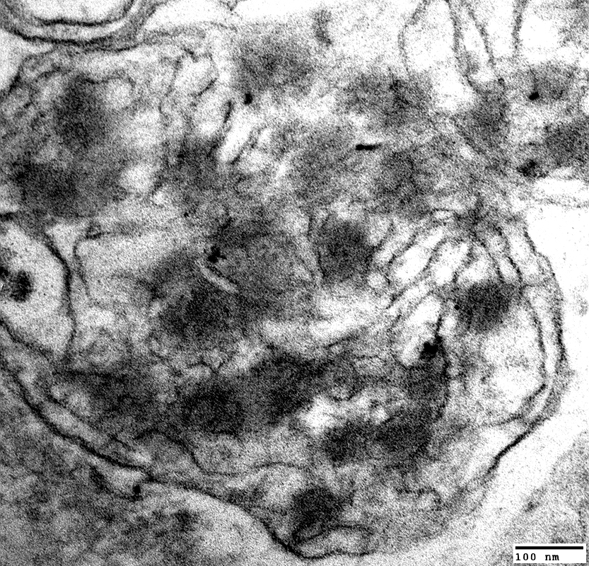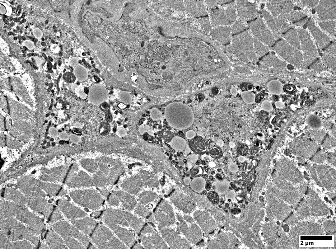 Lipid accumulation Increased Sudan black stain in muscle fiber with mitochondrial proliferation ![]() |