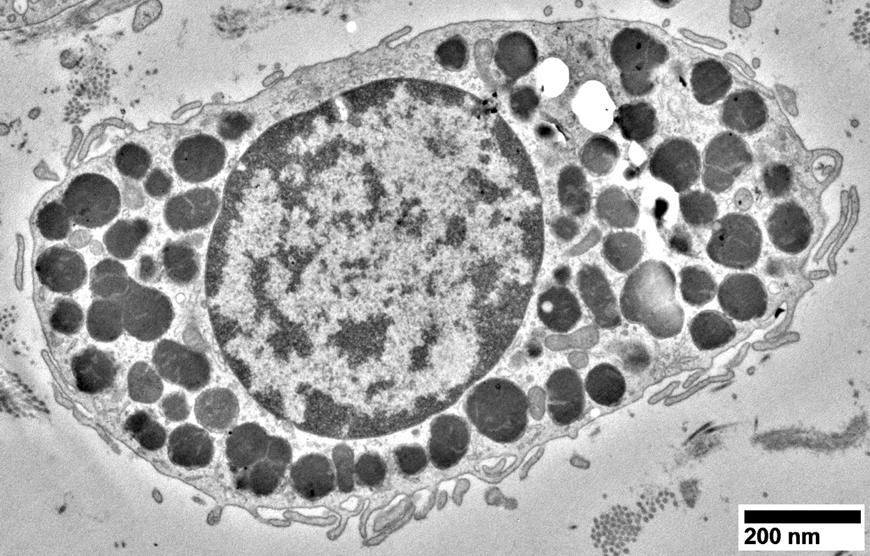 Pi granules: Few or many in cytoplasm of myelinating Schwann cells