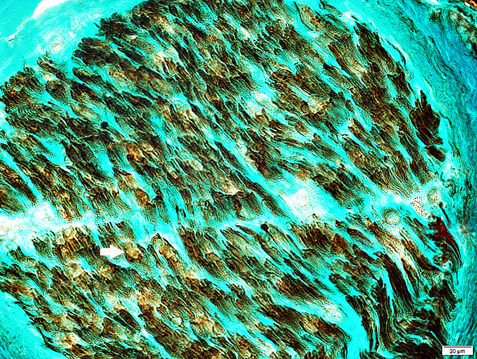 Groups of Small & Large thinly myelinated axons (Above; Arrow)