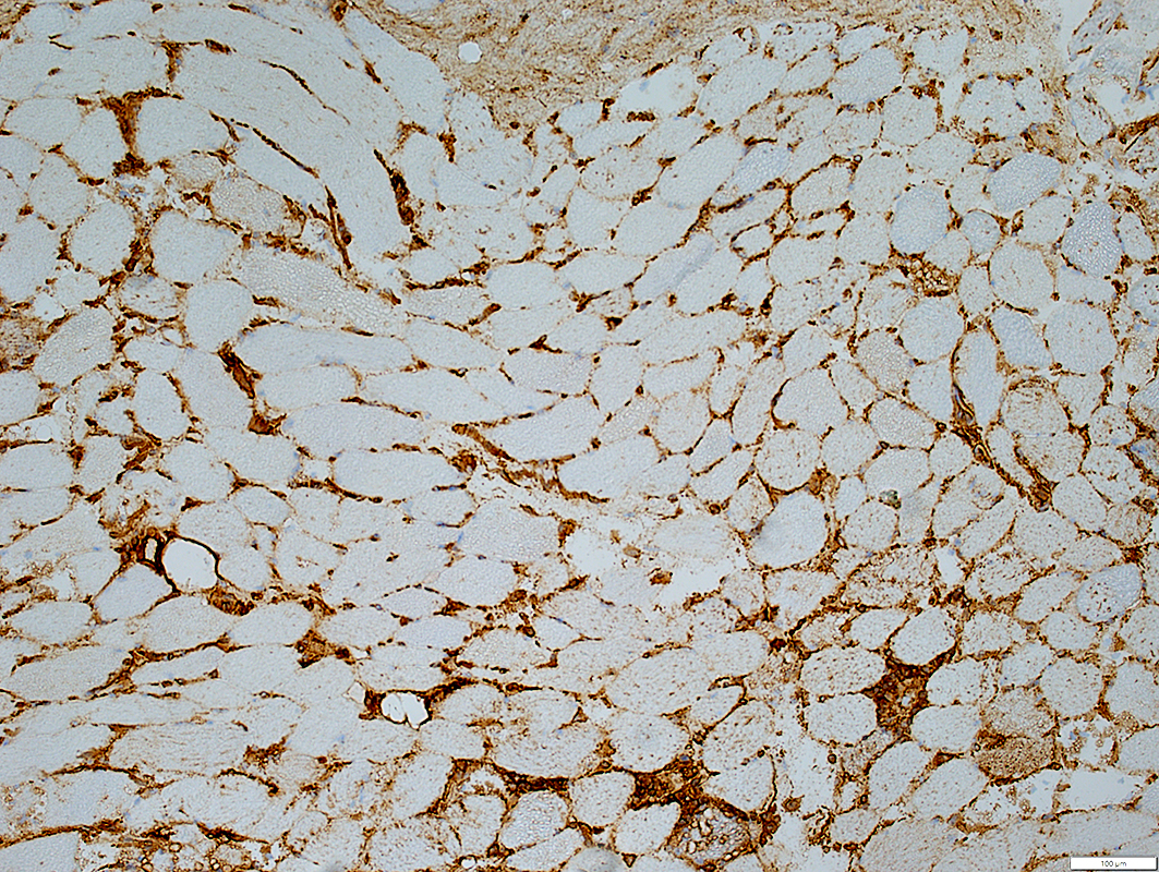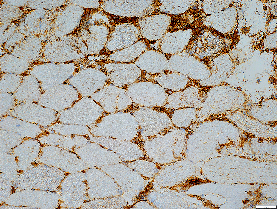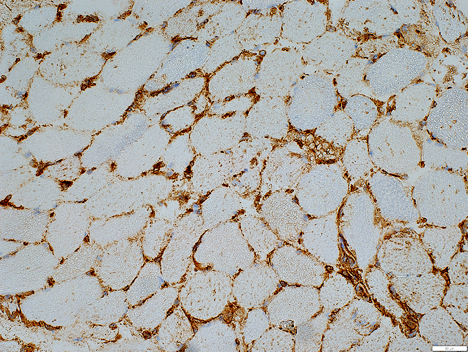 Muscle fibers: May have midly increased MHC-I expressed in cytoplasm